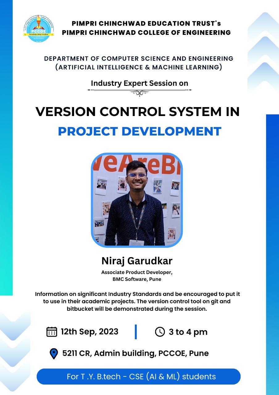 An industry guest sesion on "Version Control System in Project Development" was conducted on Tuesday, 12th Sep 2023 from 3 pm to 4 pm